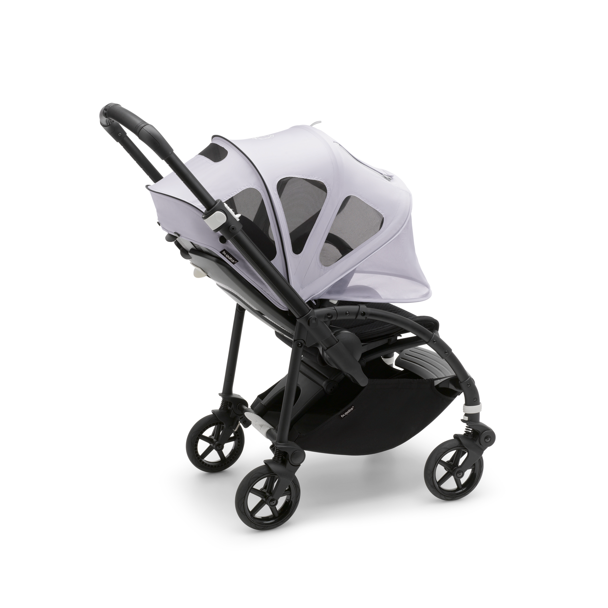 Bugaboo Bee Breezy Sun Canopy provides head-to-toe protection against mosquitos and the sun. It's made with water repellent materials and comes with integrated mesh panels that let fresh air through during the hot summer days. Featuring three different positions—open, closed, or extended—it ensures optimal coverage for your child throughout the day under various weather conditions.